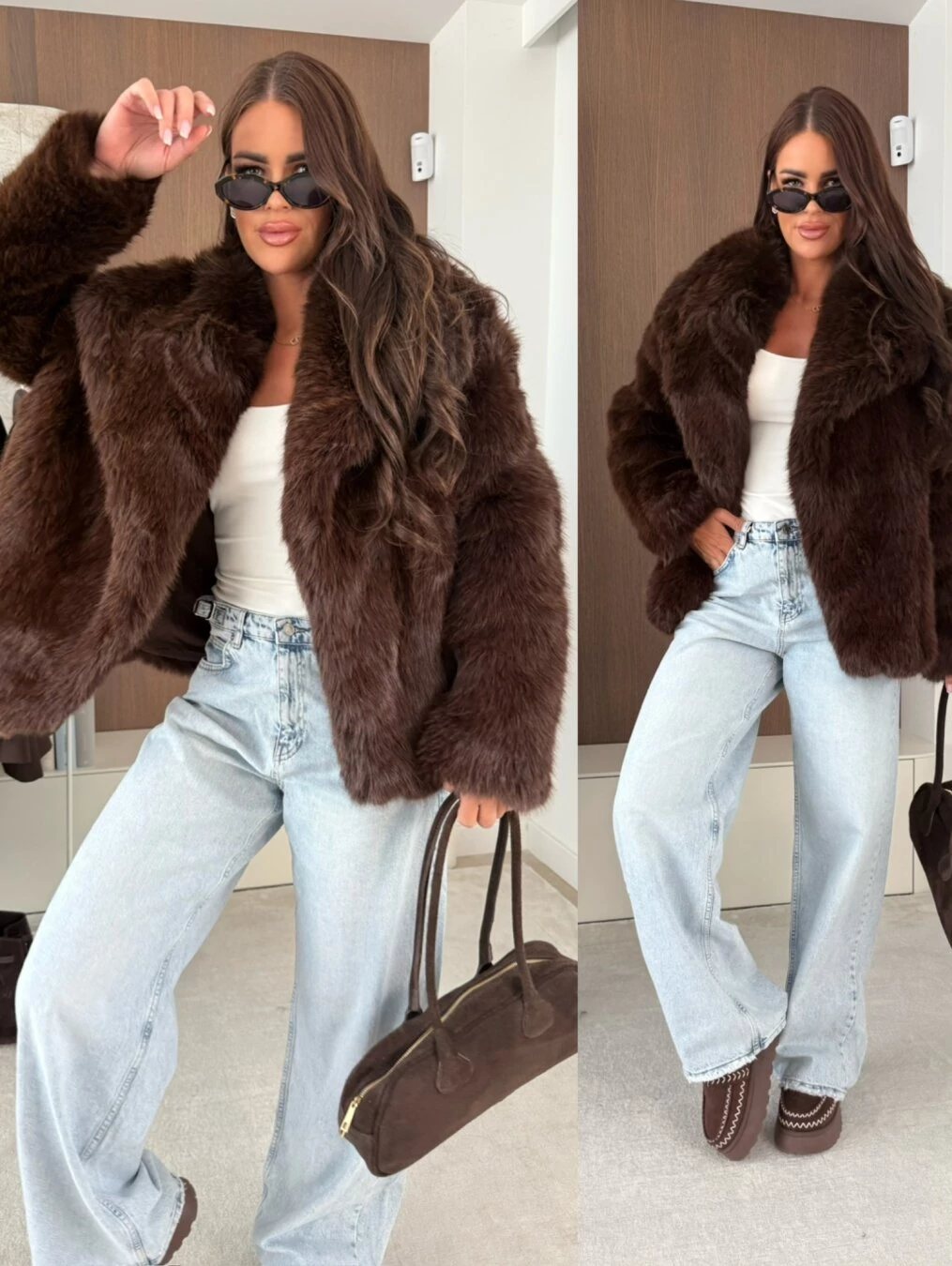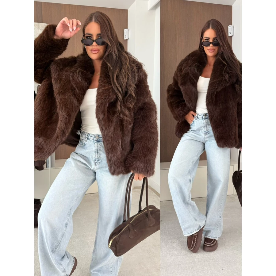 Lépj be a luxus világába ezzel a prémium minőségű barna műszőrme kabáttal!