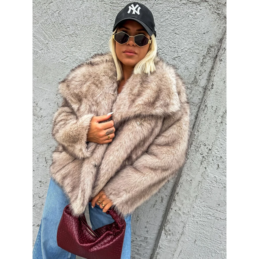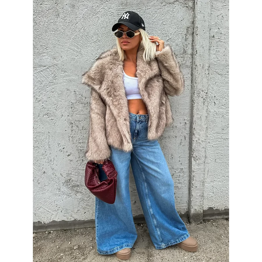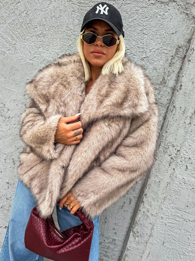 Lépj be a luxus világába ezzel a prémium minőségű bézs műszőrme kabáttal!