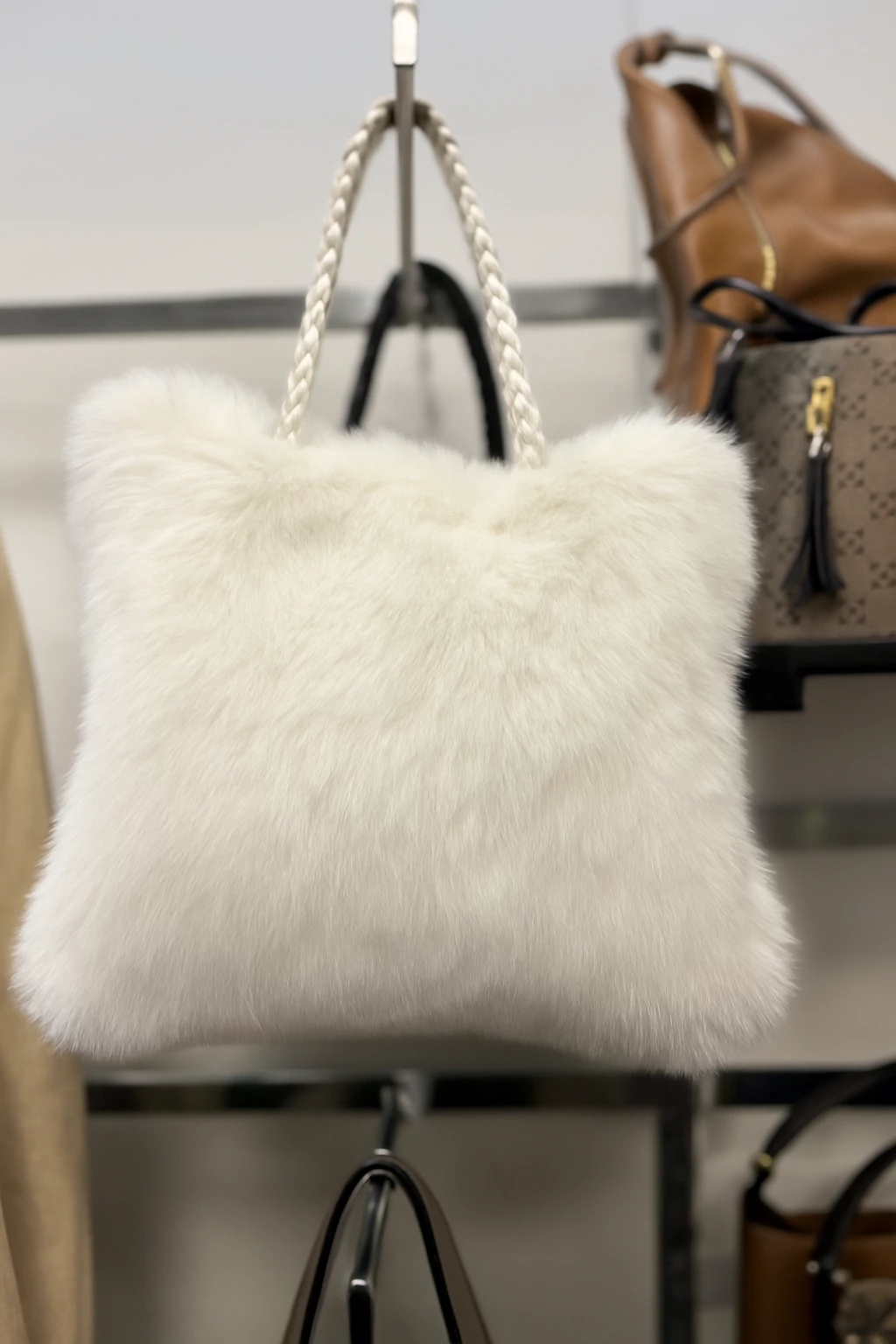 Ez a fehér szőrmés táska a stílus és a kényelem tökéletes ötvözete.